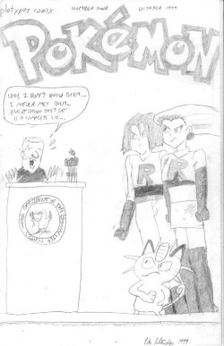 So the next few issues were similar to the "strike" storyline that ran on Platypus Comix in early 2008. With the stars absent, Head Executive had to come up with replacement content, like...a second Pokemon story. This one was more faithful to the games and show, and was about the kids obtaining a secret invite to a Pokemon League convention, which Team Rocket tries to crash in a bid to destroy the League itself.