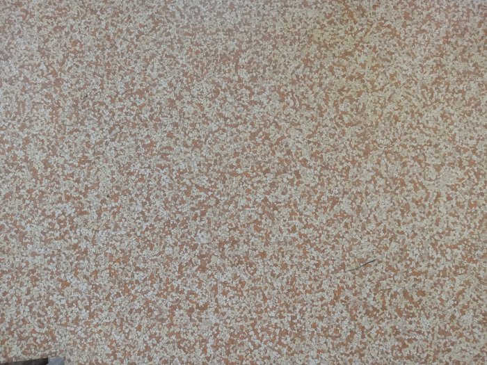 Nothing really had changed. Whoever my mother sold it to hadn't made too many alterations. We hadn't made too many either -- the floors in the kitchen and attic bedroom were still the same 1950s kitsch my grandparents had laid down (by the way, my grandfather built the entire house, which is why I was hoping it would stay in the family, but...the decision wasn't mine). This was the pattern of our kitchen floor. Imagine dropping a crumb of food on this floor and trying to find it. You didn't stand a chance.