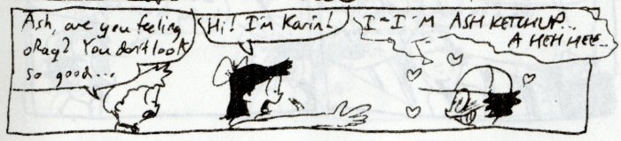 After the Hawaii trip, Misty has the bug to go someplace else tropical. They pick the island of Bula-Bula, and Snorkel Bob (yes, he appeared here before he became a character in Keiki) sends them on his cruise ship. While on the ship, Ash runs into another trainer named Karin whom he is immediately entranced by...to Misty's horror. She's an expert trainer, in the running to be the next Elite, and even has her own Ho-oh to fly on! Misty runs through a gamut of emotions from jealousy to depression...but she doesn't know the worst of it. Once they're on the island, it turns out Karin lives there...and she invites Ash to stay there with her. What will he do?