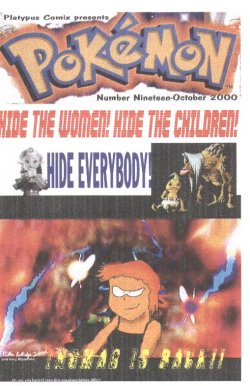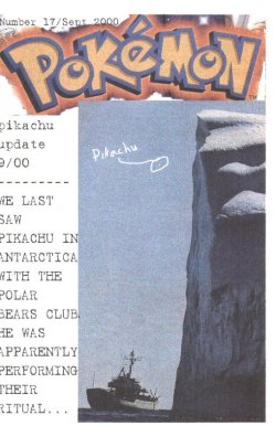 One of the funniest gags in the entire comic is when Ash gets his mugshot taken and it comes out as this real photo of a doofy-looking kid in a Halloween costume (which was scanned from the October 2000 issue of Nintendo Power). The portrait of Ash and Misty from page 2 is actually one of the images that was on the promotional CD-ROM Gamestop gave you for preordering Pokemon Gold and Silver (and I still have that CD).