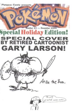 With one exception. I liked writing Gary enough that I transferred him over to Marin Meadow, a comic strip I was attempting. I used the same design and renamed him "Jack Dynamo." But he completely changed after a few weeks, the "Dynamo" was dropped, and he became a different character entirely, especially when a hazel-haired heiress showed up near the end of the strip's run to take all the attention away. Today Jack's purpose is mainly to react to things Mulberry does, but it's true -- he started as Gary Oak. And now you know that!