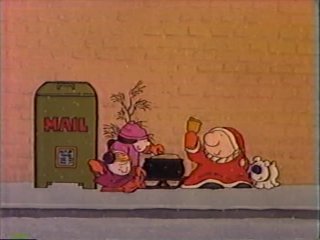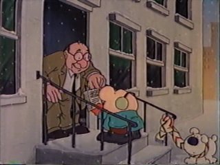 misfit? Getting a prime-time animated verision of a newspaper comic strip was a really special event, once upon a better time...a better time for cartoonists, anyway. Most popular, well-circulated comic strips (with the exception of Calvin and Hobbes) got their own cartoon specials through the mid-90's. Even if the strip itself wasn't that great, like "Ziggy," seeing the characters move and hearing them speak sure was. As a voracious comic strip reader, I loved it when these came on. But in "Ziggy's Gift" we don't get to hear Ziggy speak. We see him move though. He moves at a butter-smooth 24 FPS, constantly, thanks to the skillz with a Z of director Richard Williams. Williams, an animation legend and strict perfectionist, had taken on "Ziggy's Gift" as a way to get bread on his table while continuing work on "The Thief and the Cobbler," the biggest project of his life and the single most tragic behind-the-scenes story I can think of where no one dies. ....Well, actually, Vincent Price did.
