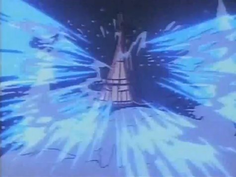 The bear has him cornered on the fireplace mantle! "GRAB THE GUN, DAD!!" Max shouts, pointing to the rifle below the mantle. But there's also a mop lying in the same place, so of course Goofy grabs that instead and tries to fire it. As the bar's jaws close around the bristles.....Goofy manages to fire the mop. I don't get it. But it worked, somehow, and the bear runs off coughing smoke all the way down the hill.