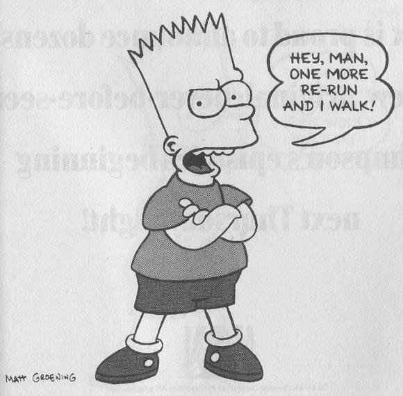 It's amazing that The Simpsons defeated a heavyweight like Cosby showing nothing but Season One reruns at first. The characters had no choice but to plead for viewers to wait:
