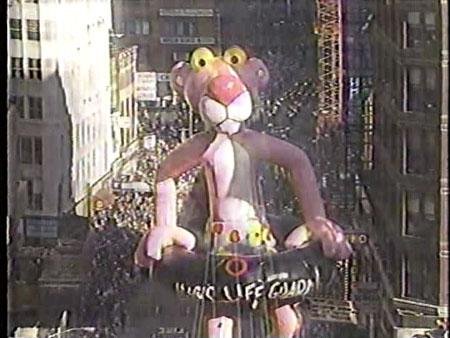 Now this was pretty cool. Not just the Pink Panther balloon (it was one of my favorites as a kid) but the actual appearance of Friz Freleng down on the street below him. Willard mentions the Panther was 15 years old in 1988. Yes, Sandy is still hosting too, but they gave Willard all the informative lines; Sandy got stuck with the extra prattle.