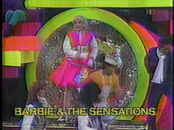 Another repeat float throughout the late 80's was the Barbie float. It was the same design no matter what was on it. In 1987 Barbie's Jem-ripoff band Barbie and the Rockers rode it; now it's Barbie and the Sensations, which looks to be a 50's throwback band. "Let me show you all how to BOP! BOP!" Barbie sings. Please don't.