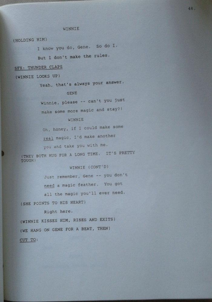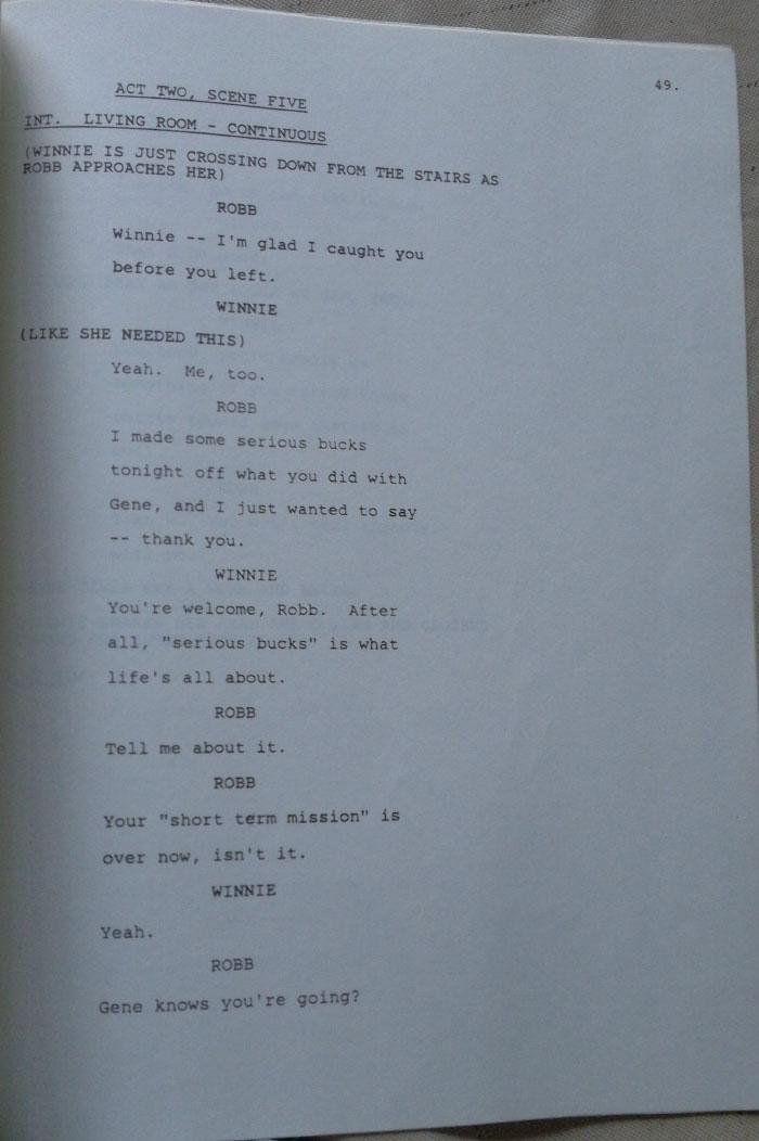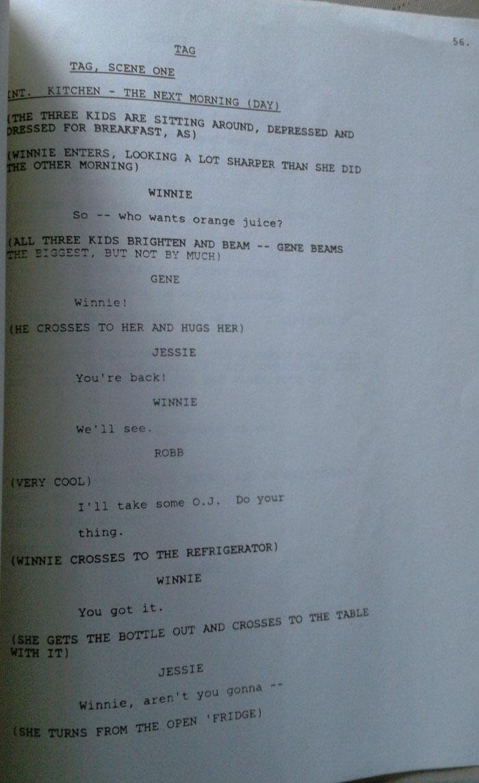 Winnie has "final" scenes with Robb and Jessie too. In the actual episode this is trimmed to just Gene and Thomas.