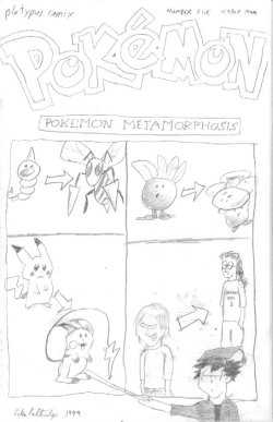 That leads to the Summer Movie Issue above. I started drawing an Austin Powers parody before realizing I had no interest in finishing it, or the rest of the issue. I had to face it: my mind was clearly somewhere else. "The Boxcar Children" ended right there, and I began work....on a Pokemon series.