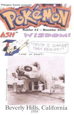 One of the funniest gags in the entire comic is when Ash gets his mugshot taken and it comes out as this real photo of a doofy-looking kid in a Halloween costume (which was scanned from the October 2000 issue of Nintendo Power). The portrait of Ash and Misty from page 2 is actually one of the images that was on the promotional CD-ROM Gamestop gave you for preordering Pokemon Gold and Silver (and I still have that CD).