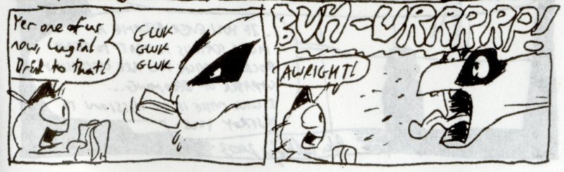 And this is why the first few months of Platypus Comix were pretty aimless, full of experiments, quickly abandoned ideas and things I'd drawn years ago. The site did not have a center until the invention of Mulberry in late 2003. But the characters I'd left behind in 2000 continued to haunt me, month after month.....until eventually, two years later, I relented.