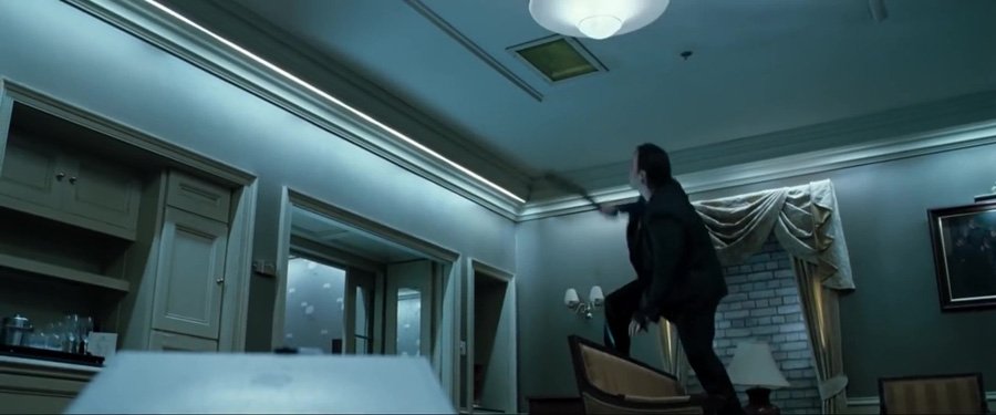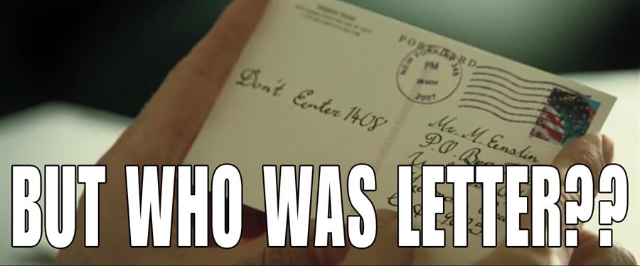 still staying in 1408. "DAMMITTOHELL," Olin utters.