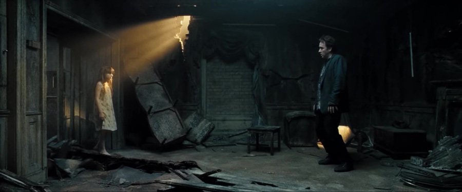 Mike's daughter, in person, says something about being cold while walking toward him slowly, her bare feet crunching on the ruined floor. He opens his arms and embraces her while weeping. "They're gonna take me away, Daddy, I don't wanna go," she says, cryptically. Then she turns into ash in his arms. Mike collapses on the charred, ruined floor at that point, a completely broken man with no more sarcastic remarks left in him. He silently watches the doom clock as it counts down its final ten seconds.