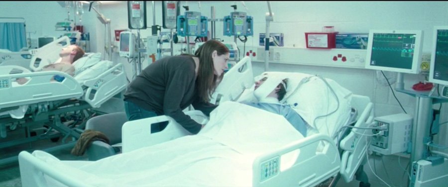 Test audiences in the US didn't like that, so in the US version, Mike lives. Firefighters burst into the room and carry him away. He wakes up in his hospital bed to see Lily standing over him, and he asks if she's real. The scene is shot differently and with alternate lighting to imply it is.