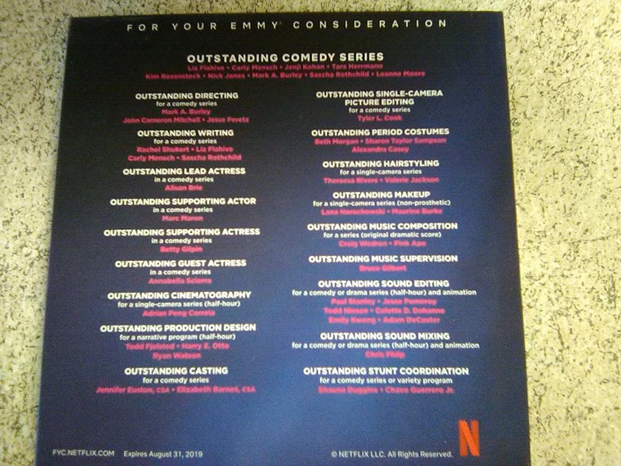 This was not the only Netflix FYC set I found that day; not by a long shot. Half the sets in the pile were from Netflix. They absolutely BOMBED Emmy voters' boxes in 2019. Nearly every Netflix series released within the last year had an FYC, including EVERY stand-up special, I kid you not. The only show that didn't have a set present -- and I have no idea why this is -- was Stranger Things.