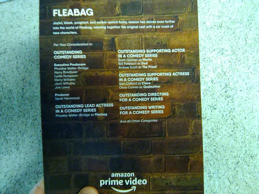 But no one got a worse deal than Fleabag, which wasn't even given a disc. Just this flimsy piece of paper, which might have been tucked into a set for another show.