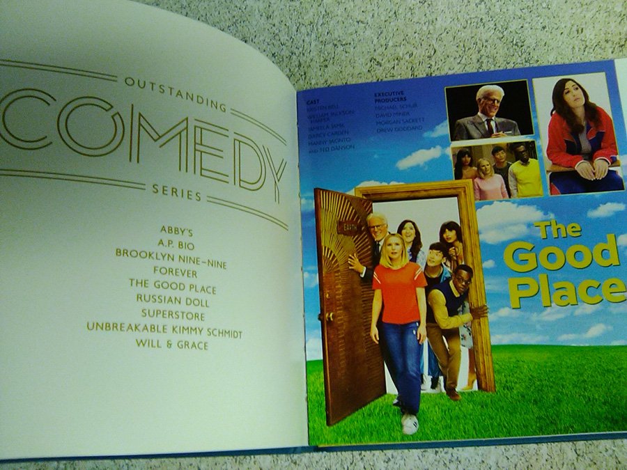 Universal Television also produced a book, but it was...more like an actual book. The DVDs are at the end, you only get a pair of them, and not every show in the book is represented. The Good Place is not playable. But Abby's sure is.