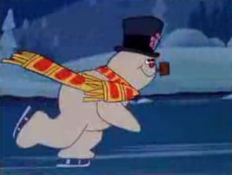 Jimmy Durante had passed on, so Rankin-Bass cast Andy Griffith to be the next caricatured narrator man. Jackie Vernon reprised his role as Frosty. The children look the same, but none of them stand out this time--they're all generic Frosty groupies who react delightedly to everything he does. Many of the same comedy bits are reused--we know Frosty can't count, so it's no surprise when he makes a Figure-9 in the ice instead of a Figure-8.