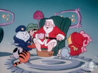 We begin this slice of archaic arcadia with Santa Claus in mid-flight, doing what he's known for doing. Except for one element. "It's a good thing my list is computerized, or I'd never get the job done! HO! HO! HO!" Santa's been around a while; how'd he do it before computers got small enough to install into sleighs? I don't think they were that small in '82 either. Methinks they were just playing with tradition because PCs were new and it was funny to slip in a reference to one, similar to that one Popeye cartoon from 1947 where Olive Oyl says, "Oh boy! Now I can go watch television!!"