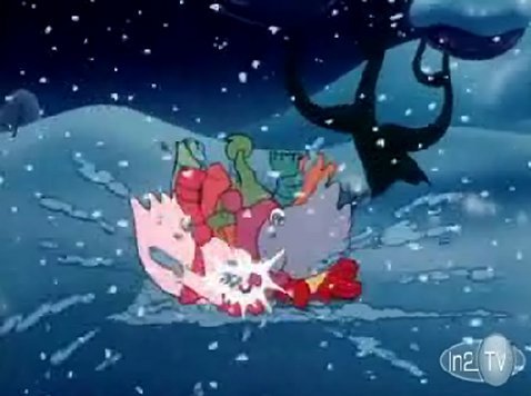 In their progress back to the Ghost House, the Ghost Eyeballs fly past Santa, and his reindeer are severely spooked. The encounter causes the entire sleigh to spiral out of control and crash into the snow! Cue commercials!