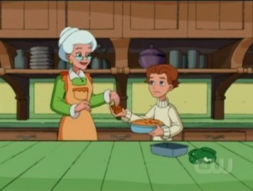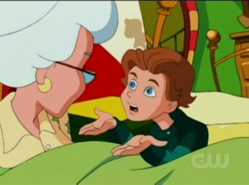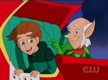Jake must bring Grandma's memories back. He takes her to the store, and shows her the elf costume she used to wear, but she remembers none of it. He brings her back home, but she doesn't recall anything in there either. As a last-ditch effort, Jake decides to give Grandma a bite of her own homemade fruitcake. THAT works. "Jake? Where am I?" "OH YEAH!" Jake grunts while thrusting his elbows. Jake feeds Grandma the whole story next. "Well, if everything you've told me is true, why aren't we at the courthouse right now, trying to stop it from happening?" She has a point, Jake, maybe you should listen to her. Why is the DOG'S name Doofus? He was actually useful.
