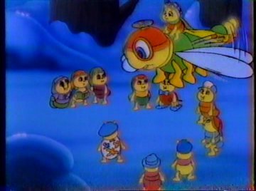 But there's hope yet -- one of the Glo-Friends saw everything! He'll not fail him, I'll betcha! "Santa's in trouble?" gasp the astonished citizens of the Glo Village. "We're on our way, all of us!" This includes a useless Glo-Turtle who swears he'll "geeeeeeet theeeeeere as sooooooon as I caaaaaaaan."