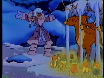 Moose delivers the Glo-Friends to Santa Claus, but it's at this time they realize they're about the size of ketchup packets and can't exert much force onto ice-cold bars. That's a detail I assumed was worked out before they left, but no, it's their folly. To make things worse, Blanche shows up again, and starts chanting a deadly (well, probably not that deadly) spell to get rid of them once and for all!
