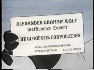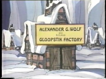 Alexander Graham Wolf, as the thing says, is an "Inefficiency Expert" and he regards Santa's workshop as the most inefficient production house in the entire world. So he's going there to modernize it with his great invention! Remember this, because he never mentions "efficiency" as a motive for what he's going to do ever again. His product, "Gloopstik," has no relation to efficiency either. What is it, then? You'll have to wait for the answer.
