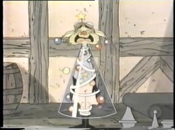 That doesn't turn out to be a good idea. The hook grabs the Wolf instead and drops him in the device, resulting in his own Gloopsticization. "OH NOOO, I'M A CHRISTMAS TREE FOREVER!!" he wails. This is a problem because he explains as he weeps that he "doesn't know how to be a Christmas tree." "Forever?" gasp