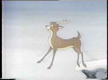 As he zooms toward the Pole, a solitary reindeer happens to hear him talk to himself. "Oh no, that Alexander Graham Wolf is going to ruin Christmas! I can't let him do that...but I can't stop him alone!" As she's talking to herself, she casually trots off a cliff, but doesn't notice she's now walking on thin air. It's not the setup to a Chuck Jones gag....it's because this reindeer is of the flying variety. Comet to be specific. I've never seen Comet made female before. Vixen I can picture, and maybe Donner, but "Comet" isn't much of a girl's name. "Who can I take with me to the North Pole who won't freeze....and is lightweight enough to ride on my back?" She has a thought, and turns to the camera. "I KNOW! RAGGEDY-ANN AND ANDY!" LIVE FROM NEW YORK, IT'S SATURDAY NIGHT!