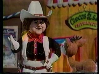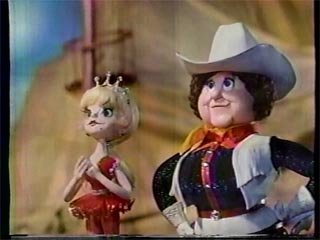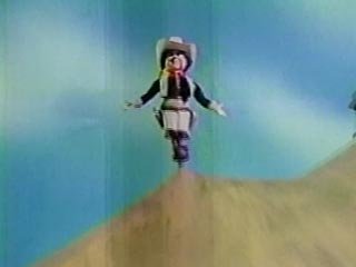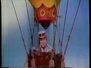Milton's hot-air balloon drifts back to the Circus by the Sea, carting Rudolph and the snow people. His fiance, Laney, is astonished, as well as her mother, Ms. Lorraine, voiced by Ethel Merman. The stuff they make Merman, a Broadway legend, say in this special is beyond mortifying. She starts right out with criticizing his career choice by saying "Aw, forget 'im, honey. If there's one thing life taught me, ya can't live on banana splits!" Lorraine changes her mind when she sees what Milton accomplished for the circus. "I guess I was wrong. Milton is more like the butter pecan he sells. A little nuts but mighty yummy! YAHOO!!" She fires a six-shooter into the air, which is what she does every time she thinks she said something clever. Mighty yummy? OMG! Did you even hear that, Laney? Evidently not.