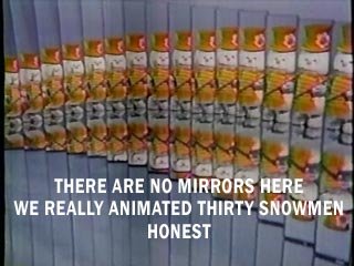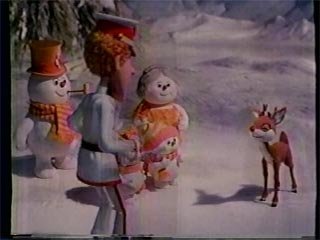 wanted, and I'll never let you go..... One of the most uninspired romantic songs ever written, and it's reprised several times through the special. It has a lot of songs, and the majority are love songs, even at times when it's completely out of place to sing about love. My theory is that Rankin-Bass wanted to sell an album on top of the special, and made the songs separately, then pounded them into the special wherever they would fit. That's what it feels like, at least. Burl Ives, where are you? "Taking you and the family would be great, Frosty.....if only there was some way to make you un-meltable..." Rudolph ponders. At that moment....