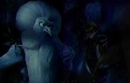 A plot hole opens up at this point. Rudolph claims if he says he didn't know what was going on, he'll get his glow back. Yet this contradicts something Lady Boreal said at the beginning, that if he ever used his power for evil it would be "extinguished forever." Her exact words. Even Boreal seems to be taking that back, though. After Rudolph sings about how sad he is, he hears a voice from the sky, specifically emanating from the Northern Lights. "I am no more," Boreal projects. "But there is still a way you can be saved.....Be brave, Rudolph.......be brave, and your light will return.......be brave....." She keeps saying "brave" as the light fades. "Be brave"? That's all it takes to un-forever his extinguishment? Why didn't she say that in the first place? Worth mentioning: during the visuals of Rudolph's song, some pictures flutter to the floor, among them an autographed photo of his girlfriend Clarice. This is the only reference to the original special there is. Aside from Clarice, no one appears -- not Hermey, not Yukon, no Bumble either. We DO get a cameo by the big whale from Rudolph's Shiny New Year.....uh, yay?
