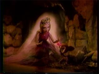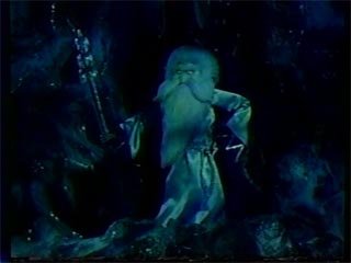 You have to at least give them credit for treating their mythos seriously. The histories of Rudolph, Frosty and Santa had already been told in their respective specials, so this one neatly fills in the gaps to tie them all together, explaining what the North Pole was like before Santa. It was a nasty place; there was a mess wherever you stepped. The Arctic was once ruled by the cold fist of the powerful wizard King Winterbolt. Every elf feared him; every polar bear made yellow snow in his presence. But then from out of nowhere came Lady Boreal, the goddess of the north! She was so sick of his crap, she immediately zapped him into a deep freeze. Winterbolt attempted to blast her with his magic, but it pathetically ricoched off her force field. Then she hit him back, which resulted in Golden Line #1.