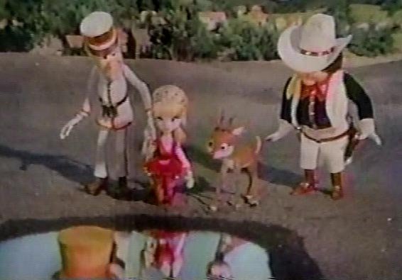 "It's....all....over.....Frosty!" Rudolph utters awkwardly. "Awkward" is the only way I can describe Billie May Richards' performance this time. Or, let's put it this way: if William Shatner was pretending to be a robot, and the robot was pretending to be Barack Obama, that's how many odd pauses and stilted line deliveries are coming out of Rudolph in this flick. "Aw, Rudolph, your nose just can't