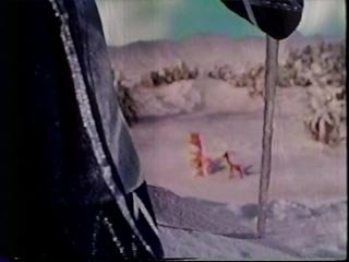 Frost's frosty breath re-frosts Frosty and family, resurrecting them! No longer in a swirly prison, the Clauses' sleigh finally arrives to take everybody home! And on top of everything else, Santa gives Lorraine a bag of his magic corn feed, which will make all her circus animals fly, and guarantee that every show is sold out from this point. So that's it! You're done, Rudolph! Now get lost, all of you! Why didn't it fit in? In Europe, this movie actually got a theatrical run. |