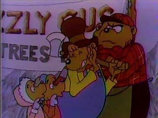 Mama Bear doesn't explain why she isn't going out with Papa and the kids to find the perfect tree, but she does give Papa the following instructions: they're to buy a tree from Grizzly Gus's Christmas tree lot down the road, and they're to come home before the big snowstorm hits. Given that Papa is carrying an axe as he walks away, it's already obvious he has no intention of listening to Mama, even though she's the Flawless Voice of Feminine Reason and he is the Stupid Husband Who Can't Do Anything Right. This special, by the way, was so influential that every single three-camera family sitcom has been copying its structure for the last 20 years. "But Papa, I don't