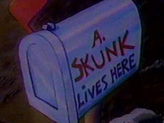 A. Skunk lives here. A SKUNK LIVES HERE! Not only a skunk, but also a bunch of squirrels, a grouse, twenty crows, and one small chipmunk angrily waving his arms in karate positions. Not wanting to risk a confrontation, Papa Bear and the cubs leave this tree alone. It would just make them hypocrites anyway -- the Bears live in a tree themselves. It's starting to snow now, which Mama warned him about, but Papa is determined. "I will find the right tree. No matter when, no matter where! Or my name isn't Papa Q. Bear!" That's right, his actual name is Papa, which probably means the other bears are actually named Mama, Brother and Sister. Quick fact: the first Berenstain book, "New Baby," featured the birth of Sister and Brother was called "Little Bear." I guess he had his name legally changed at that point.
