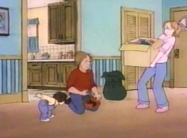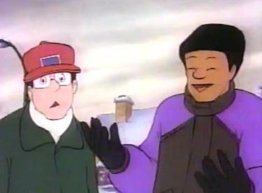 In The Bestest Present, Elly's family was voiced by Lynn's family. The brother, the sister and the husband were all played by the people who inspired them. This one has different people. "Mike" gained a noticeable Canadian accent after puberty. "See all dat sneww? Dat's big box, babee! I'm gonna make COOOLD HERD CASH clearing driveweys! You betcha!" How much money can you really make from driveways? In Mike's case, about $100 in 1992 dollars. "What are you gonna