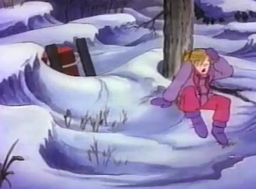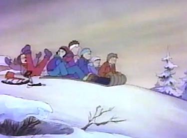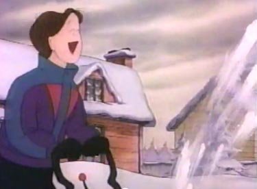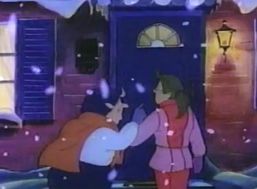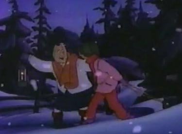 The old granny leads Lizzie across a bridge, and she starts to recognize where she is. Elizabeth walks up the path to her house and goes inside, but only Farley is there because everyone else is out looking for her. Liz turns around one more time to thank the old woman. Wait a doggone minute....she just disappeared from view, and the horizon is too far off for a woman of her age to reach in that time span. And how did she know where Lizzie lived? And....wait a minute, there was no log cabin there at all! She was an ANGEL! A CHRISTMAS ANGEL! Well, happy Snowflake Day, angel! Happy Snowflake Day EVERYONE!