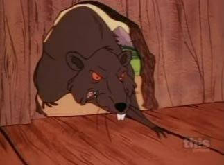 Grunyon explains the situation, and that Snow White needs a place to hide. The Giants are more than happy to oblige, take the fugitives into their cottage, and take the key out of an old cuckoo clock for Snow and Dwarf to live in. There's no hiding from the Evil Stepmother, though. The Magic Mirror tells her exactly where she is. E.S. travels to the land of the giants, transforms into a rat, and chews her way through the door while her new giant friends are out plowing soil. What they're doing is creating mountains and rivers, like they've always done. And you thought erosion and time made those things. There's your proof of life on Mars -- so many mountains.