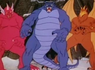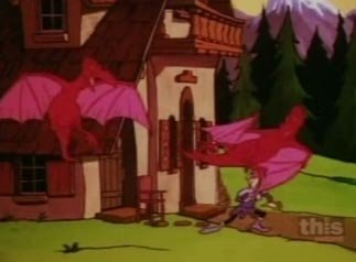 As for the giants, they're back to keeping Snow White in the house again, but this time they assigned a guard. If you can believe it, they assigned HICKER. I can't see the others besides Brawny being very effective either, but putting the most easily scared guy there doesn't make logical sense. All this time, there have been two vultures hanging around the Evil Stepmother. They were watching as she unthawed and they've been peeking through her castle window now and then as she concocted her evil plans. As best as I can guess, Filmation got this idea from the fact that when the Evil Queen plummets to her death in the 1937 film, they cut to two vultures watching with VERY interested eyes, which was Disney's way of suggesting "We can't show anything, but trust me, her guts are everywhere." That ending won't do if she's still alive, so Filmation made them her sidekicks, sort of. The Stepmother turns the vultures into dragons to chase off Hicker, which I have to admit is cool. At the very least, she seems more powerful than the original Queen. She's not exactly Malificent, but she's been doing a wide variety of stuff, and she's not through yet.