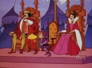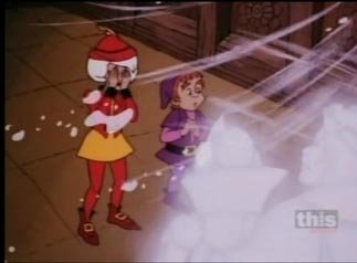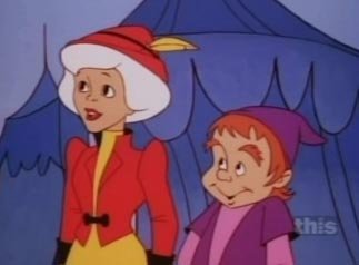 Yup....that's Snow White! With Grunyon, her one dwarf! If Filmation still expects to fool people into believing Disney made this, they missed the mark by a country mile. People may be dumb, but they're not that dumb. How are they supposed to mistake Miss Peter Pan here for the Disney variation? Worse yet, Snow White is voiced by Lou Scheimer's daughter, and some of her line takes are so bad that she keeps emphasizing the wrong words. "Mo-ther! Fa-ther! May I play in the fes-tival for a WHILE???" is one example. A lot of effort went into that "while" of hers. "I so love the Ice