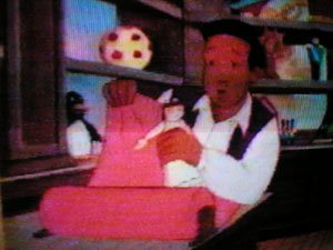 The store owner returns and says "Wow, Peter, you really did take good care of the shop!" What he doesn't know won't hurt him, I guess. He completely loses all chance of ever being told what really happened when he offers Peter a free toy as payment. Peter's got his eyes on a small train, but then he thinks of Ivy and COINCIDENTALLY picks the doll to give her, as thanks for saving his African-American behind. The owl seems to have a problem with that, and flies off the shelf to--honest--viciously bite Peter in the arm. We don't see what happens to Peter after this, and that owl showed all the symptoms of rabies, so perhaps not everyone lived happily ever after. It's wishful thinking, anyway.