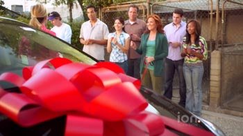 If that wasn't appalling enough, she blows five wishes in the next minute, mostly on clothes. She also rigs a car giveaway, wins the lottery, and asks for 20-20 vision. I can see that last one having some use, but crud, this woman is so vapid it hurts.