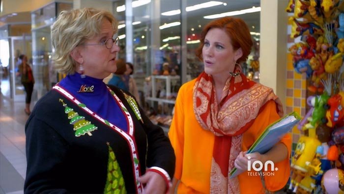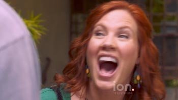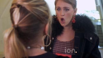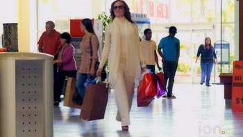 Laura has a very obvious red herring of a boyfriend. You've seen this character before -- he's always in a suit and obsessed with his job. The date they're on is more expensive than usual and she thinks he's about to propose to her. But instead, he's actually paid for this big fancy dinner and wine to say, after much dramatic buildup, that he just quit his lucrative hedge fund job. When I say this buildup was dramatic, I mean over thirty seconds of steadily rising music while Laura's big open mouth gets bigger and bigger and the guy says "...and so, I was wondering if you would do me the honor of quite possibly granting all my dreams and wishes by agreeing to what I'm about to say which is....." It was an obvious punchline already, but they overcooked it into ashes. Now Laura is at a mall, talking to a co-worker. Laura isn't worried about her job because she just sent some killer fashion designs to a new client. At that moment, said client marches up and demands to know where the designs are. Laura swears she sent them, but looks at her notes again.
