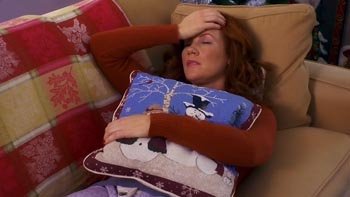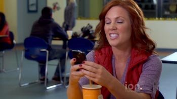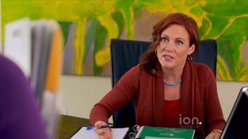 One scene transition later, she's inside Noel's office. She's surprised to see a pudgy female emerge from the back room. She thought it would be a man, seeing as there are a lot of men named "Noel." ....Her boyfriend is named "Morgan," you'd think she wouldn't be quite as surprised about the gender thing. I was surprised too, but for another reason. Noel is played by Chonda Pierce, a Christian comedian. It's very rare that people successful in religious circles are able to escape the protective bubble of that culture and get anywhere in a judgmental world, even if it's a lousy cable TV-movie. And I only know of Chonda because my aunt was a huge fan of hers some years ago. She subjected the rest of us to some Chonda stand-up videos and she was.....eh. Not all that great. But to see her on something that wasn't one of her VHS releases was quite a shock. "Let me tell you what's wrong with you mortals today..." Laura does not seem to notice this slip of the tongue, nor the five other ones that clearly reveal her paranormal identity. Noel launches into a soliloquy on human selfishness, peppered with occasional moments of educational facts. "DID YOU KNOW you sleep a third of your life away?" Noel points out. I never would have known this.