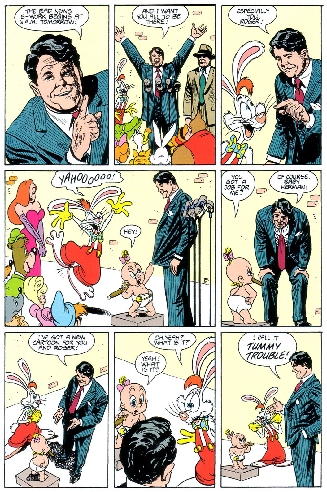 Around the same time "Tummy Trouble" was playing in theaters, something called "Roger Rabbit: The Resurrection of Doom" appeared in comics shops. "Tummy Trouble" was covered in there, but it was the last eleven pages of a larger story that revealed what happened to the characters AFTER the original movie ended. It may not be much, but it's the closest Disney has ever come to actually producing a sequel.