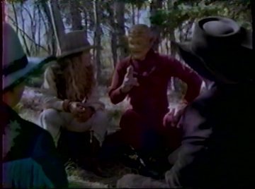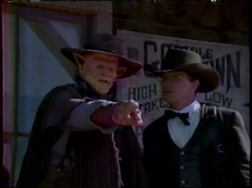 They have to find the outlaws and recover the alien's stolen equipment before history is permanently altered. Of course, it could be altered anyway if an alien creature steps into town, so they cover him with their picnic blanket. "Cuz it won't attract any attention if he walks around with a bright checkered sheet draped over him.