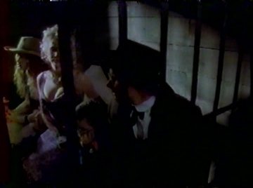 A chat with the sheriff in the saloon confirms what they suspected outside: the town has a completely ineffectual sheriff, and they're on their own. The alien is in another room, hitting on a dog (really). "Can I freshen your drink?" he says seductively, while pulling over a doggie dish full of water.