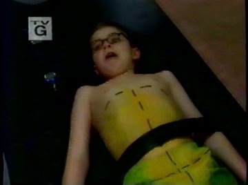 Nick-centered episodes usually dealt with his own insecurities. You'd think a total genius would have no problem dissecting a frog, but Nick has major issues with his impending assignment. Nick is having nightmares of a giant frog coming to dissect him, with occasional appearances by Fiona Apple (???). He wakes up screaming every night and then nobody else can sleep. Wayne could just walk to the drugstore and buy some Tylenol PM, but he always has to do things the hard way, so he actually builds a portal to Dreamland and rides a scooter into Nick's dream.